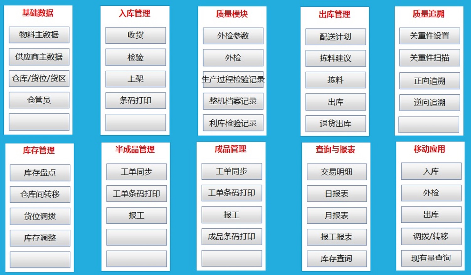 J-CLOUD WMS 系統(SAAS):是J-CLOUD專業為企業打造的高效、規范、協同的精益物流平臺,包括到貨、入庫、上架、檢驗、投料指示、備料、分揀、配送、出庫、轉庫、預裝/分裝、盤點、盛具及商務智能等管理,全面覆蓋原材料、半成品、產成品等倉儲管理的所有環業務節,全面提升企業的精益物流管理水平。