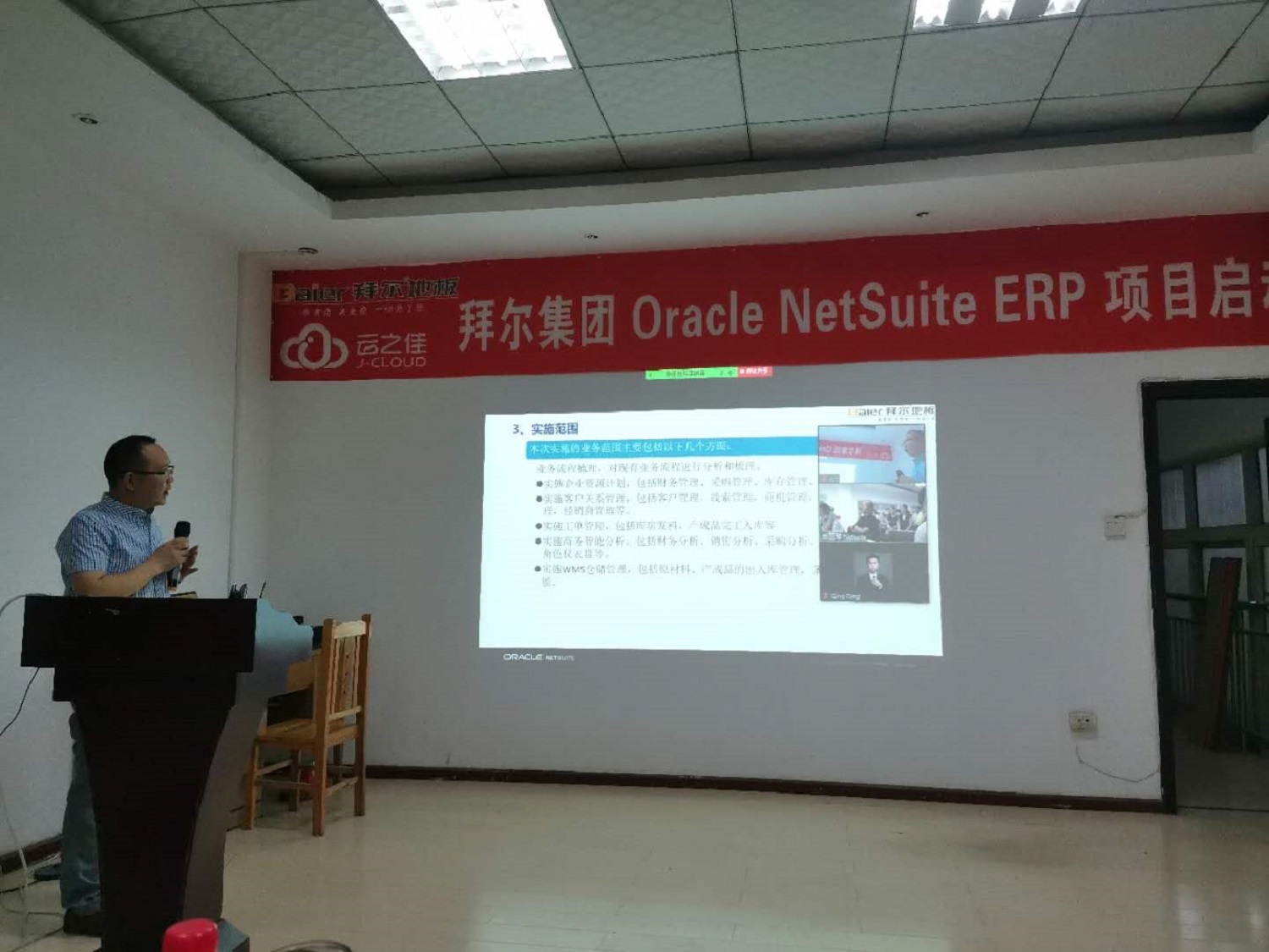 拜爾集團Oracle NetSuite ERP項目啟動大會于2020年7月2日正式召開,出席本次大會的有:拜爾集團劉尚清董事長、劉平董事長及拜爾集團的高管團隊和中層團隊;Oracle NetSuite大中國區總經理Bird Yip、高級咨詢顧問卿擎、高級銷售經理畢麗琴和劉磊等;重慶云之佳科技股份有限公司(J-CLOUD)董事長丁厚平、本項目項目經理張小華、實施顧問周婭紅等。出席大會的還有拜爾集團的部分供應商及客戶。