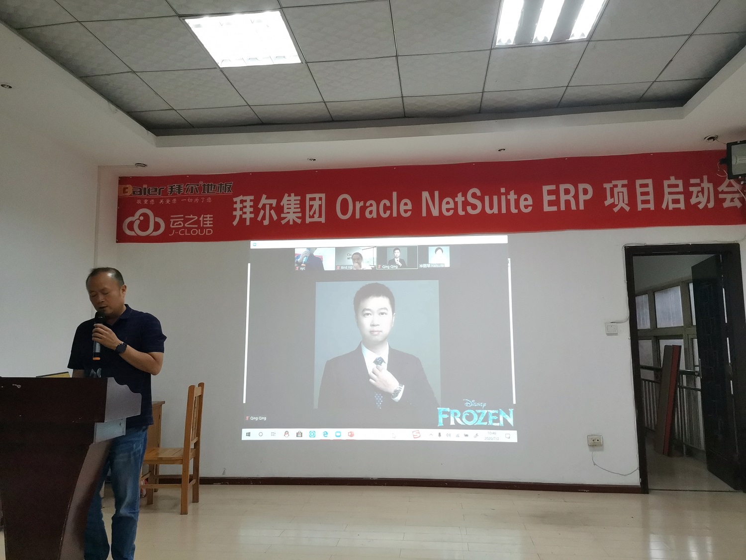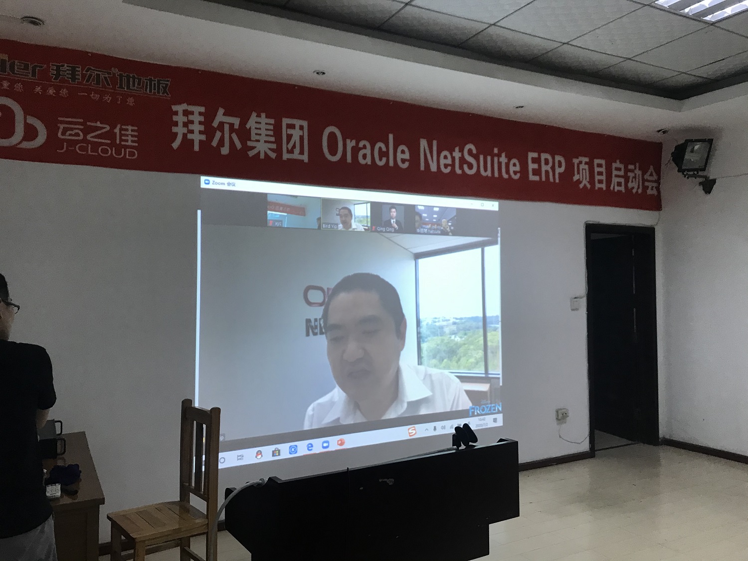 Oracle NetSuite大中國區總經理bird、高級咨詢顧問卿擎等遠程視頻參加啟動會。