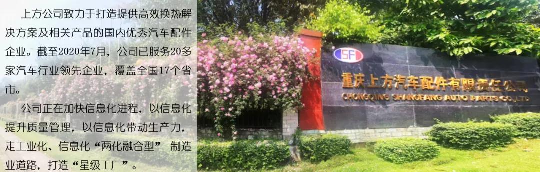 公司秉承著“遠瞻之上 方育勝景”的基本理念,希望通過信息化和工業化的深度融合,以高品質、高效率、高服務為目標,旨在把上方汽配建設成為可持續發展的中國汽車零配件行業換熱系統龍頭企業,更好地回饋客戶、股東、員工及社會。