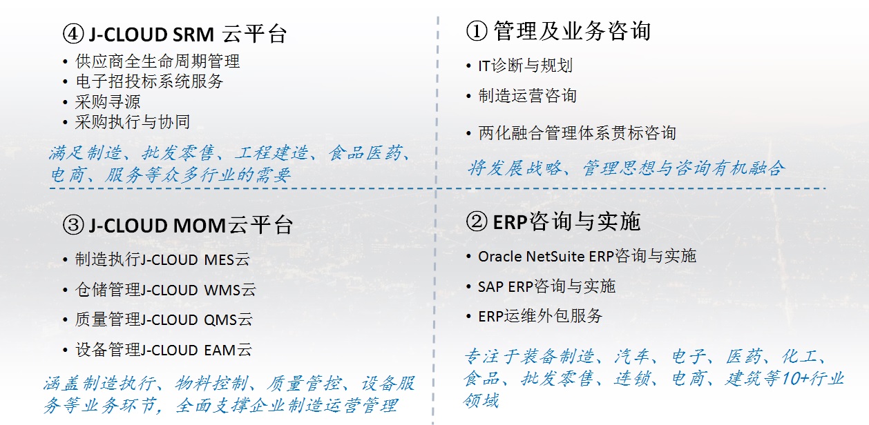 【云之佳】云之佳(J-CLOUD)涵蓋SRM、NetSuite、MOM、WMS、MES、SAP、EAM、QMS等業務