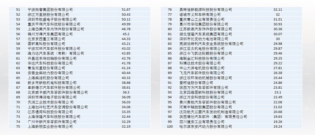 由于從2017年后,中國汽車工業出現一定幅度的下滑,因此中國汽車零部件企業100強的銷售收入基本沒有提升,排名第一的濰柴集團2017年收入為2581億元,2020年降為2164元,100強的門檻2017年為18.88億元,2020年為19.24億元,基本沒有變化,因此導致中國汽車零部件企業進入世界100強的數量由2017年的18家降為2020年的11家。