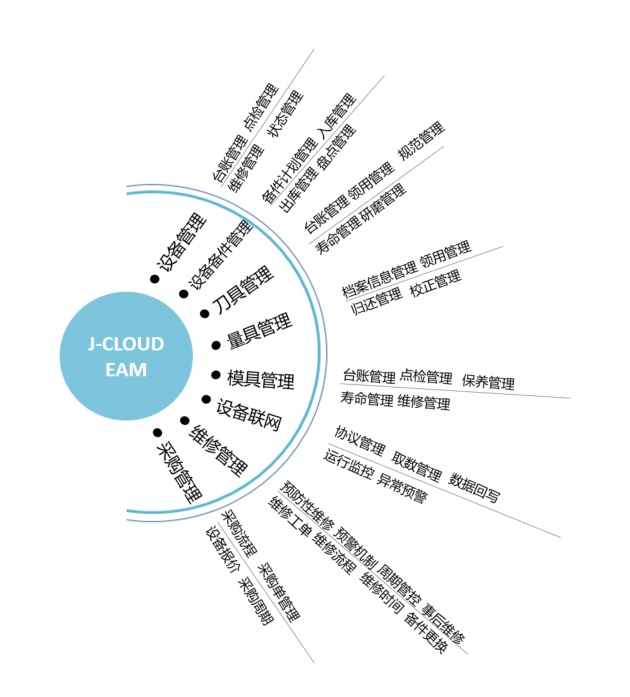云之佳(J-CLOUD)EAM數(shù)字化設(shè)備管理系統(tǒng)涵蓋設(shè)備、設(shè)備備件、模具、工裝夾具、刀具、量具等設(shè)備資產(chǎn)的全生命周期的數(shù)字化管理,云之佳EAM數(shù)字化設(shè)備管理系統(tǒng)是重慶云之佳科技股份有限公司(J-CLOUD)自主研發(fā)的云之佳MOM制造運(yùn)營(yíng)管理系統(tǒng)的一個(gè)子系統(tǒng)。